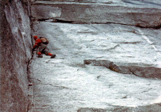 Claudio Corti sulla parete nord del Piz Badile © Mike James, Aug 1961