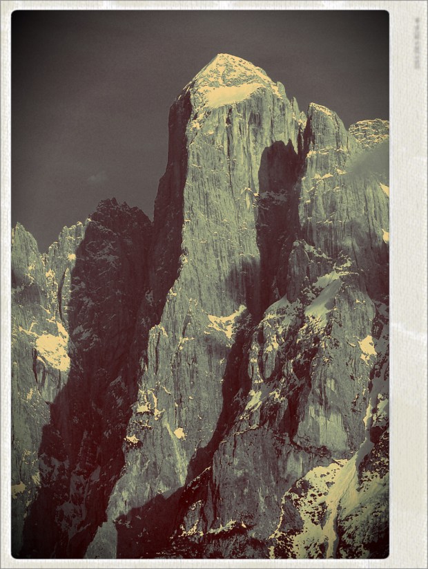 tanto per chiaccherare (ma questo dimostra che pareti di 1500 metri come queste non sono semplici da avvicinare, nemmeno per i percorsi più classici), amici si sono persi sulla Jori anni fa e, tutto d’un tratto, si sono ritrovati sullo spigolo nord (faccia a faccia con erri de luca, :=) …)