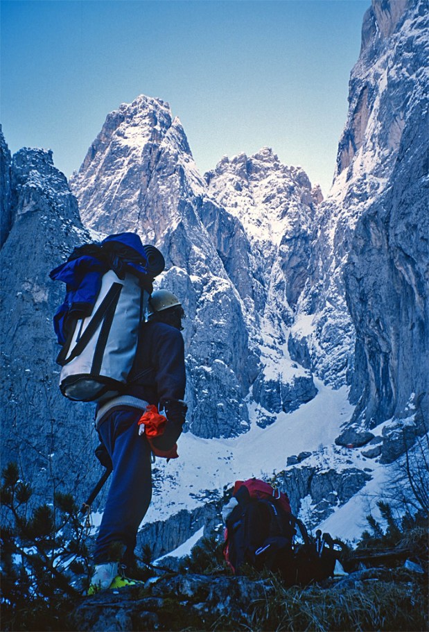 Il problema della nord est dell’Agnèr, a sinistra della “Jori”, era visibile e manifesto a tutti, ma pochi avevano provato seriamente a decifrarlo. Ciò che imprimeva preoccupazione non erano tanto le difficoltà tecniche della parete, peraltro molto elevate, ma piuttosto le incertezze ed incognite complessive che quella muraglia di 1400 metri di dislivello poteva presentare: appariva come un salto nel buio.