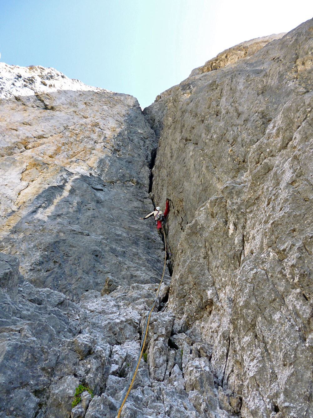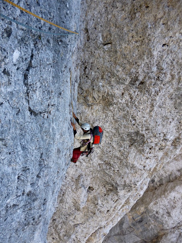 ciò vale anche per il grande diedro bee (peraltro irripetuto), apparentemente insignificante in termini di lunghezza sulla foto, ma che ha un dislivello di più di 500 metri (autonomi)