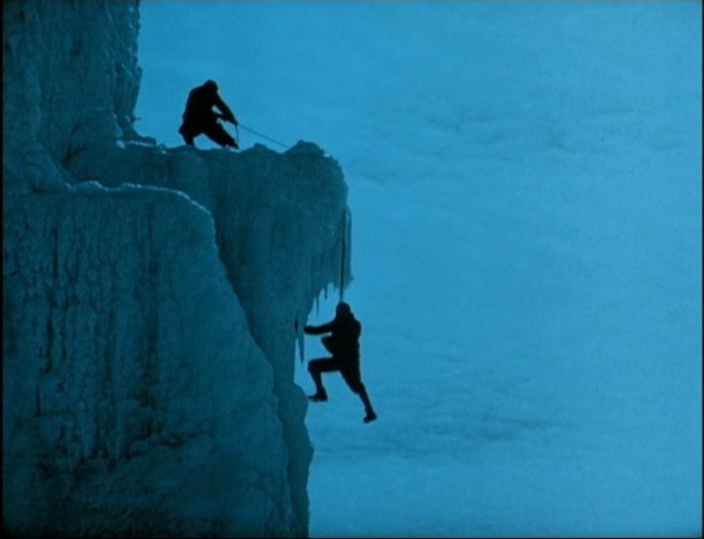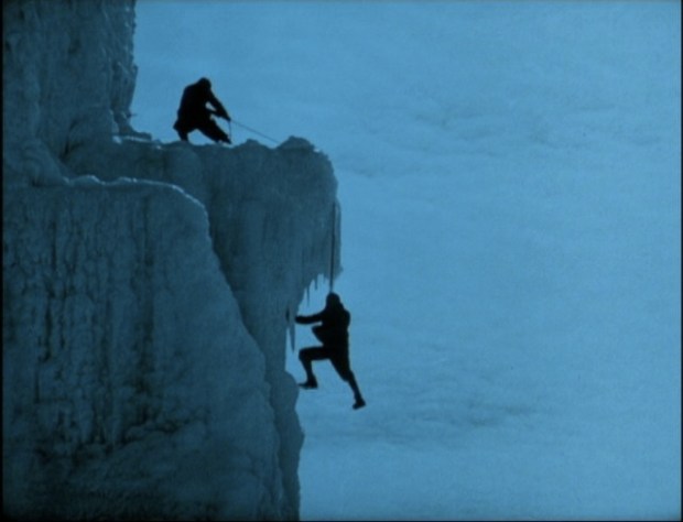 Agguanto per bene la mano, la picca di destra esce dalla sua sede e gli occhiali cadono nel vuoto. Ho un momento d’incertezza perché so che ai movimenti successivi non sarà concessa una replica. Respiro a fondo e anche gli altri tre punti di ancoraggio perdono il contatto: sono sospeso nel vuoto e mi sembra di avere un peso incredibile che mi attira verso il centro della terra. Il mio mondo è ora tutto in quei due pugni serrati. Mi vedo dall’esterno come nelle immagini di un film espressionista tedesco.